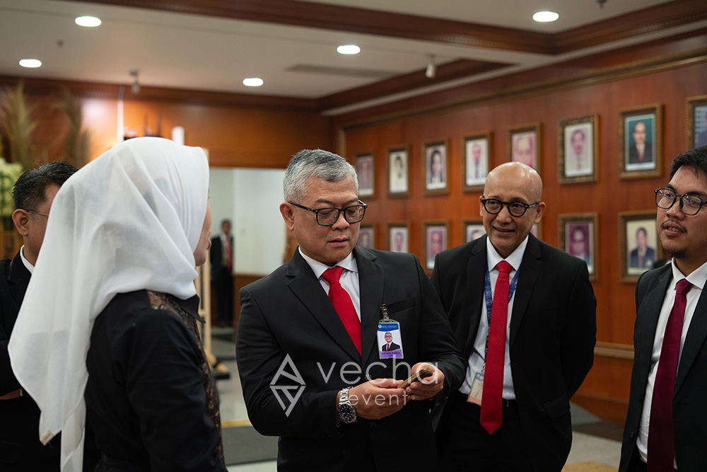Dipercaya sebagai event organizer, Vecha Event Organizer berperan mendukung kelancaran seluruh rangkaian acara melalui pengelolaan teknis dan operasional yang disesuaikan dengan karakter masing-masing agenda. Pada acara pengukuhan, Vecha Event menangani penataan dekorasi area UMKM agar tertata rapi, representatif, dan selaras dengan nilai kelembagaan Bank Indonesia.
