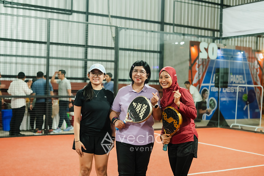 Sementara pada kegiatan fun padel, Vecha Event menyediakan dekorasi area pertandingan olahraga serta jersey peserta, dan mendukung hiburan untuk menciptakan suasana yang dinamis serta mempererat kebersamaan antar peserta. Pada agenda malam ramah tamah, Vecha Event mengatur alur acara dan dekorasi guna menghadirkan suasana yang hangat, tertib, dan berkesan.